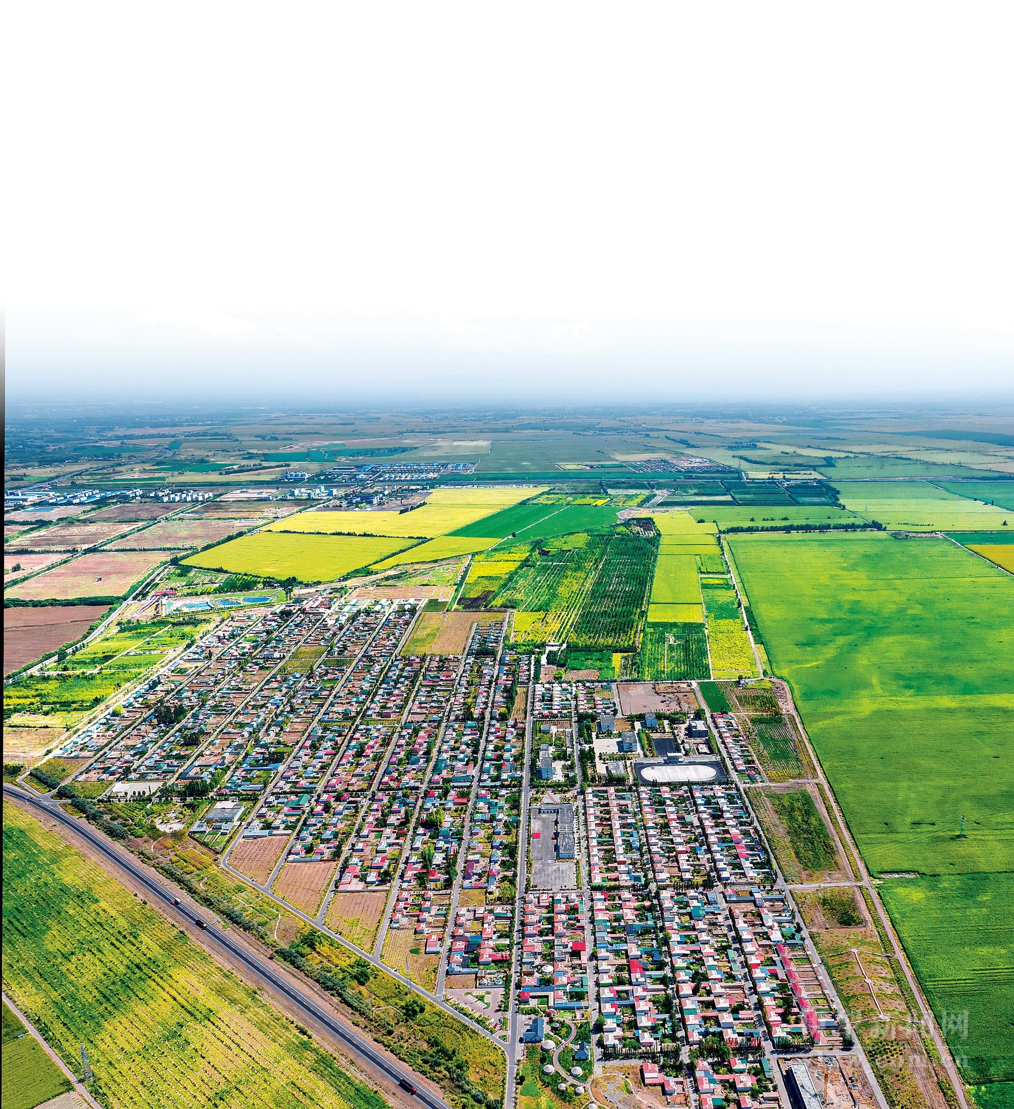 俯瞰察布查尔锡伯自治县察布查尔镇乌宗布拉克农村社区