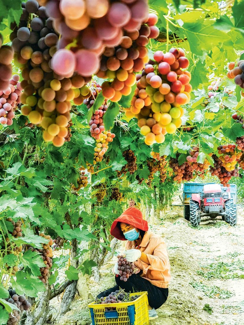 霍尔果斯市莫乎尔牧场红地球葡萄丰收