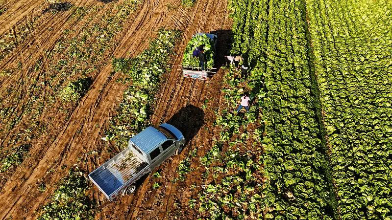 近日,在伊宁县英塔木镇喀拉苏村,茂盛鲜嫩的大白菜、芹菜、卷心菜、萝卜、大葱等蔬菜品种繁多,村民们忙着采收、拉运。这些蔬菜将被送往各地的农贸市场,为消费者提供丰富多样的选择。