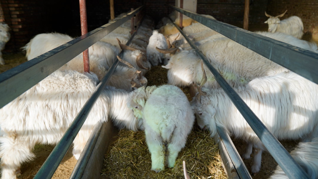 “我家里有300只羊,提前准备了300捆玉米秸秆、300捆苜蓿草、300捆菜籽秸秆和4吨玉米,足够整个冬天用了。山羊吃得饱,我心里才放心。”热合曼·西马尔指着棚圈里悠闲咀嚼草料的山羊说。