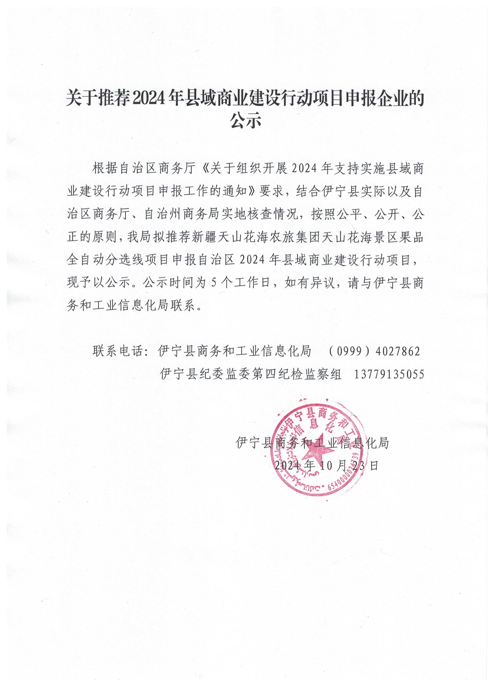 关于推荐2024年县域商业建设行动项目申报企业的公示