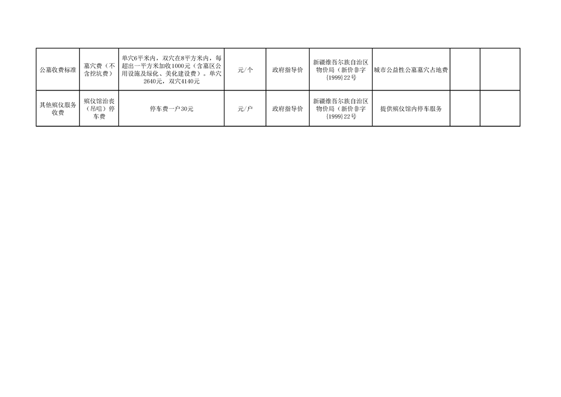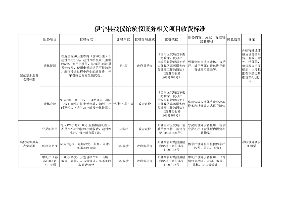 伊宁县殡仪馆殡仪服务相关项目收费标准公示