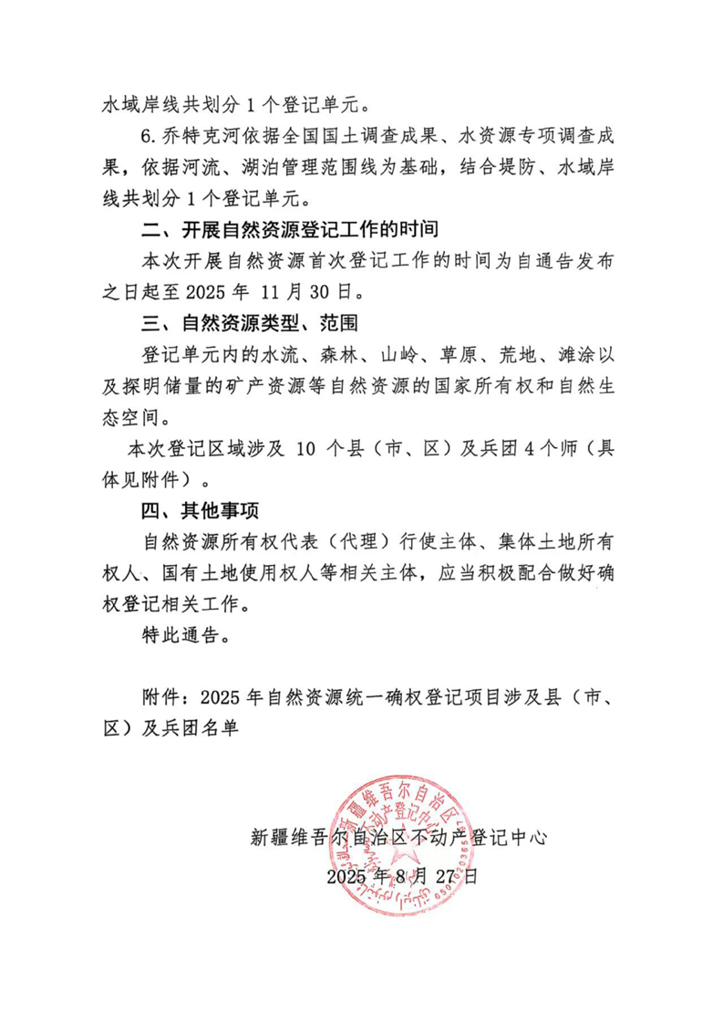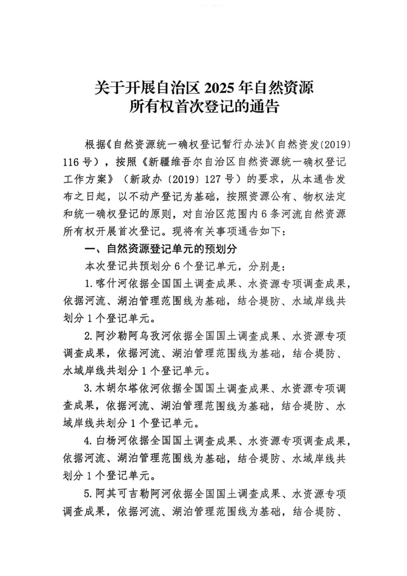 关于开展自治区2025年自然资源所有权首次登记的通告