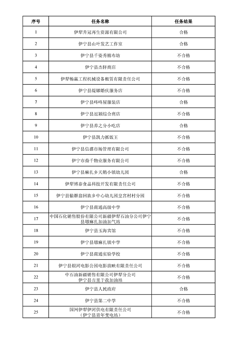 伊宁县消防救援大队2025年12月“双随机”检查结果公示