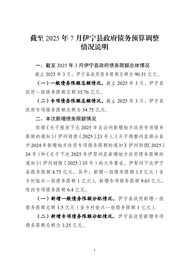附件1 1-1截止2025年7月伊宁县政府一般债务限额、余额情况表.pdf