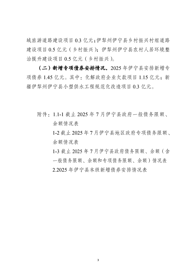 附件1 1-3截止2025年7月伊宁县政府债务限额、余额(含一般债务限额、余额和专项债务限额、余额)情况表.pdf