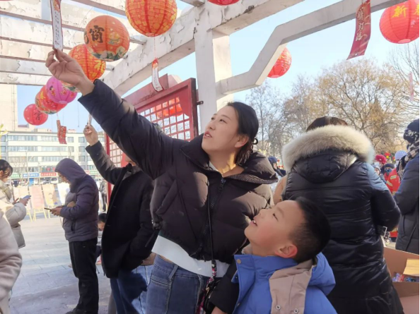 前来参加活动的群众热情高涨,有的独自沉思、眉头紧皱,努力破解灯谜奥秘;有的三五成群热烈讨论、各抒己见。现场气氛热烈,欢声笑语不断。