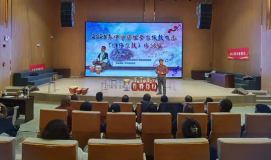 此次培训班由伊宁县文化体育广播电视和旅游局主办,伊宁县文化馆承办。培训课程内容丰富、针对性强,包含政策理论解读和专业技术培训两大板块。在政策理论解读环节,授课教师详细阐述了国家关于非物质文化遗产保护的最新政策法规,着重强调了保护与传承民族文化的重要意义,以及传统文化在现代社会背景下的创新发展路径。在专业技术培训中,多位资深艺术家亲自登台授课,通过现场演示、“一对一”指导等方式,悉心传授纳格尔鼓的基本演奏技巧、曲目解析以及独特表演风格等核心要点,让学员们深切领略到这一传统艺术的独特魅力。