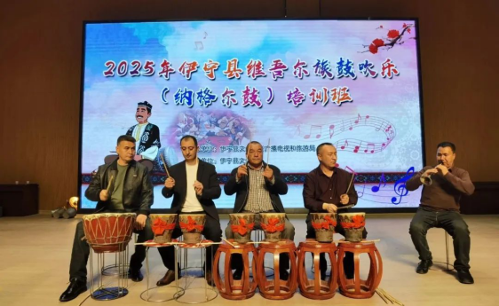 为深入贯彻落实习近平总书记关于非物质文化遗产保护工作的重要指示批示精神,推动非遗传承人才培养,让民族文化瑰宝绽放新光彩,3月24日至28日,伊宁县举办为期五天的2025年维吾尔族鼓吹乐(纳格尔鼓)培训班。