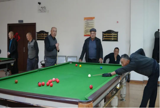 台球赛场,老年选手精神矍铄,精准走位、恰当力道展现精湛技巧,氛围和谐;乒乓球赛场,选手们全神贯注,挥拍击球,乒乓声与报分声交织;扑克区,选手们或思索策略或默契微笑,尽享竞技与相聚之乐;象棋赛场,选手端坐棋盘前,神情严肃博弈,楚河汉界间尽显智慧。