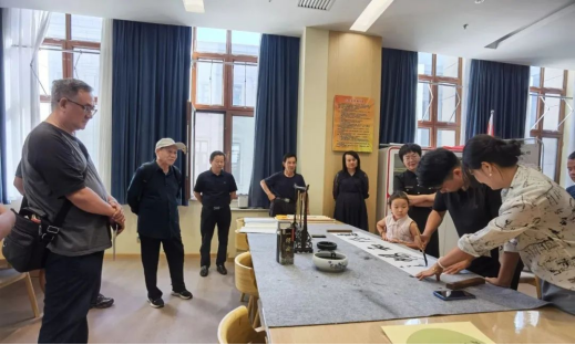 实践交流环节更是将活动推向高潮。张凯挥毫泼墨,现场展示精湛的书法技艺。他的笔下,每一笔都力透纸背,每一个字都神采飞扬,或刚劲有力如苍松翠柏,或飘逸灵动似行云流水,引得在场观众阵阵惊叹。“我们新疆好地方”、“明月出天山”等充满地域情怀的词句在他笔下熠熠生辉,既展现了书法艺术的魅力,又传递了对新疆的美好情感。在点评书法爱好者们的作品时,张凯从线条的质量、字体的姿态、整体的气势等多个角度进行分析,在肯定了他们在书写过程中展现出的热情与努力的同时,针对作品中存在的不足之处提出具体改进建议,让参与者们清晰地认识到自己的优势与差距,明确了今后努力的方向。
