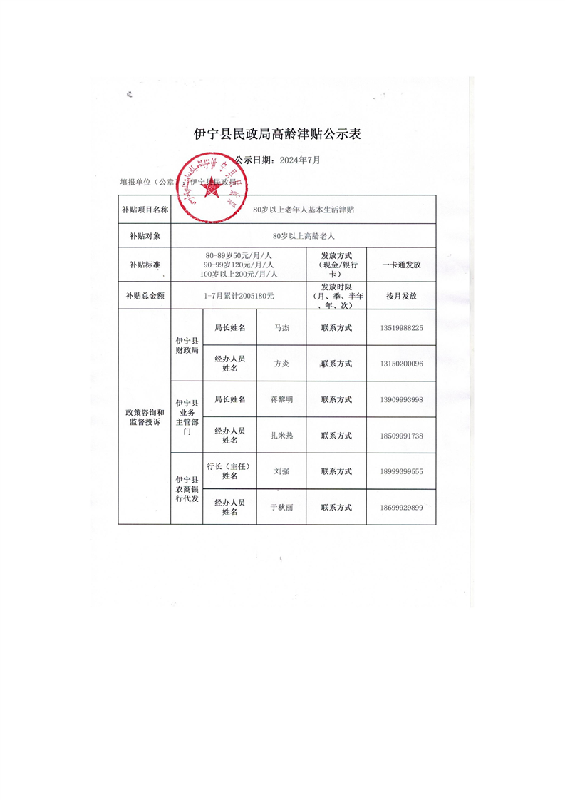伊宁县民政局高龄津贴公示表