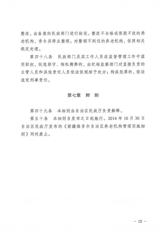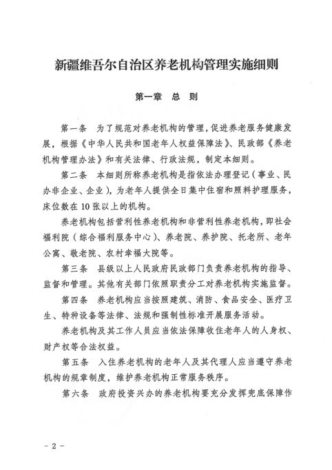 关于印发《新疆维吾尔自治区养老机构管理实施细则》的通知(新民规发〔2022〕5号)