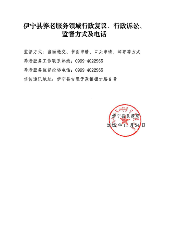 伊宁县养老服务领域行政复议、行政诉讼、监督方式及电话