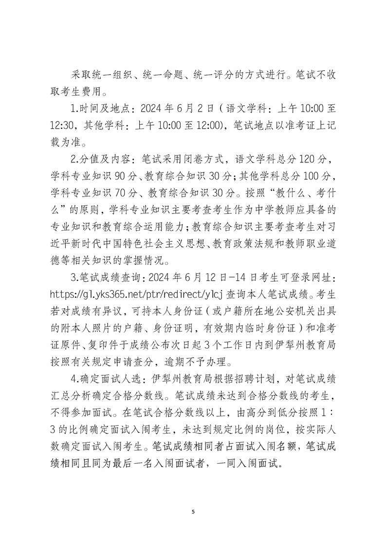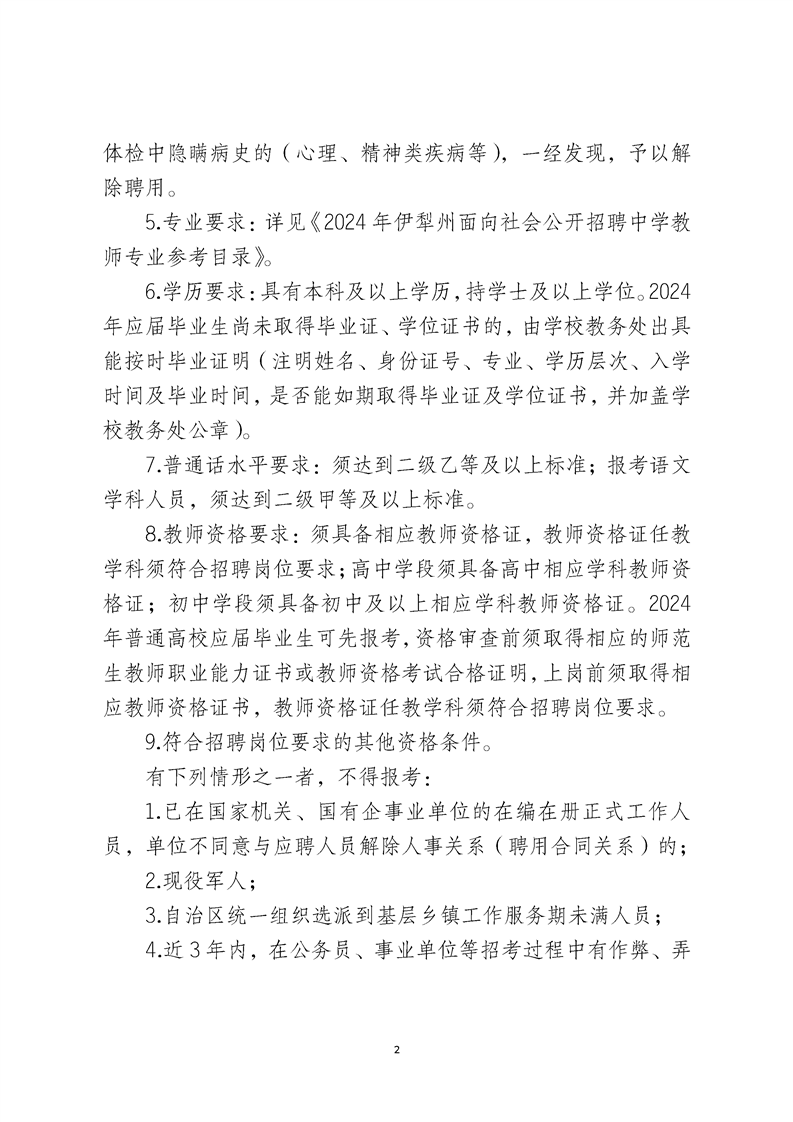 2024年伊犁州面向社会公开招聘中学教师简章