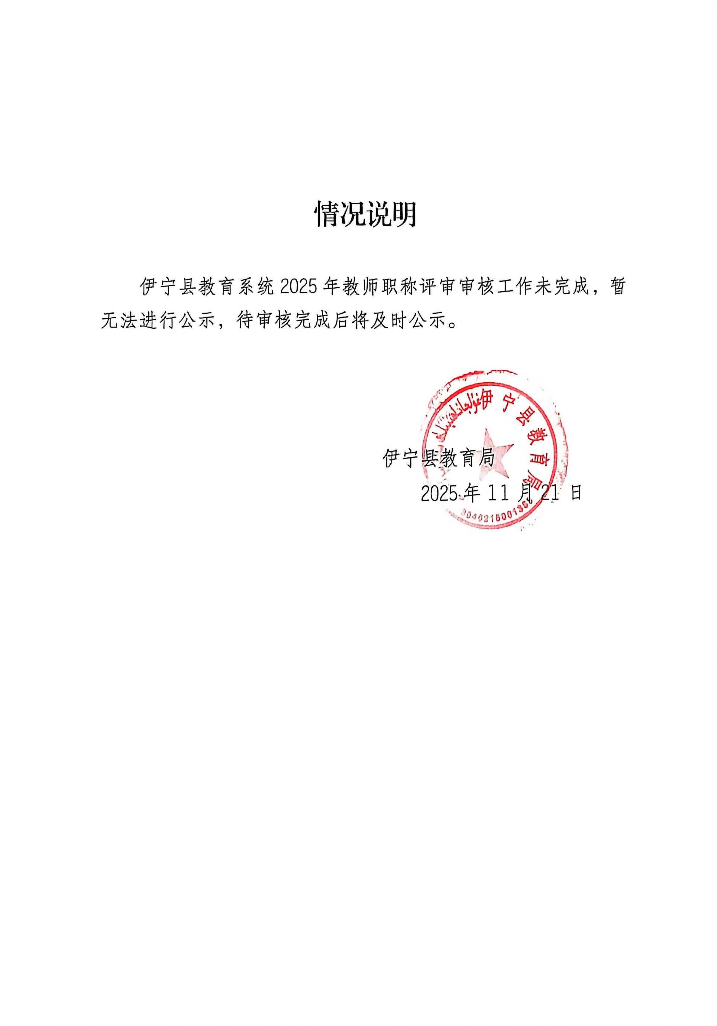 2025年伊宁县教师职称评审结果情况说明