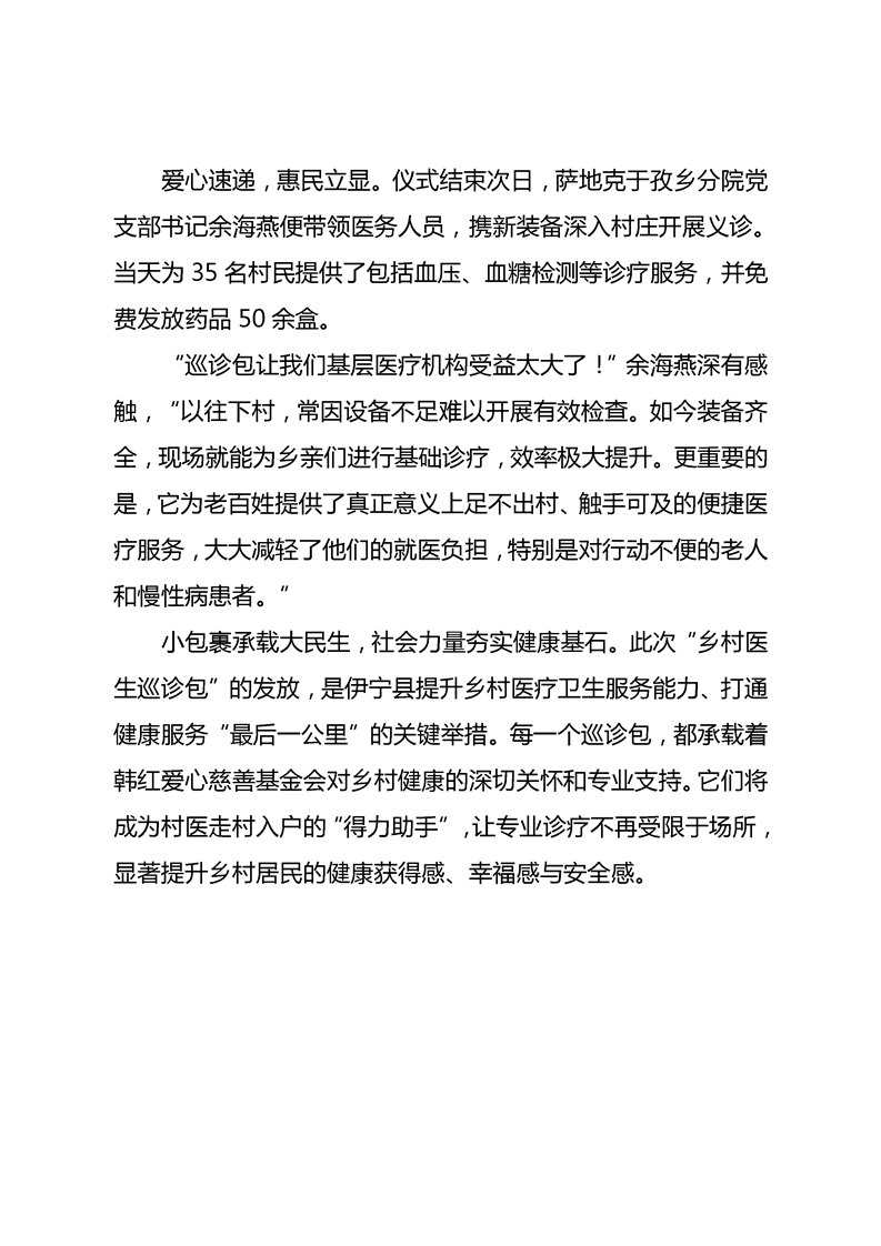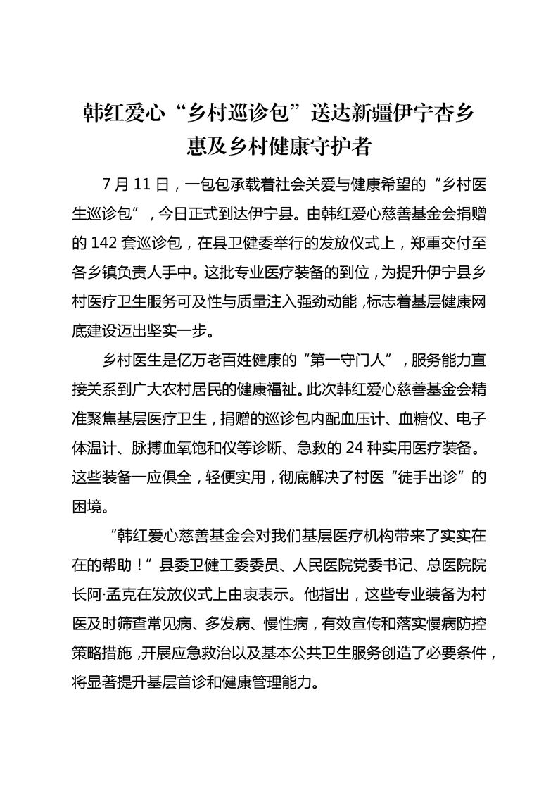 韩红爱心“乡村巡诊包”送达新疆伊宁杏乡惠及乡村健康守护者