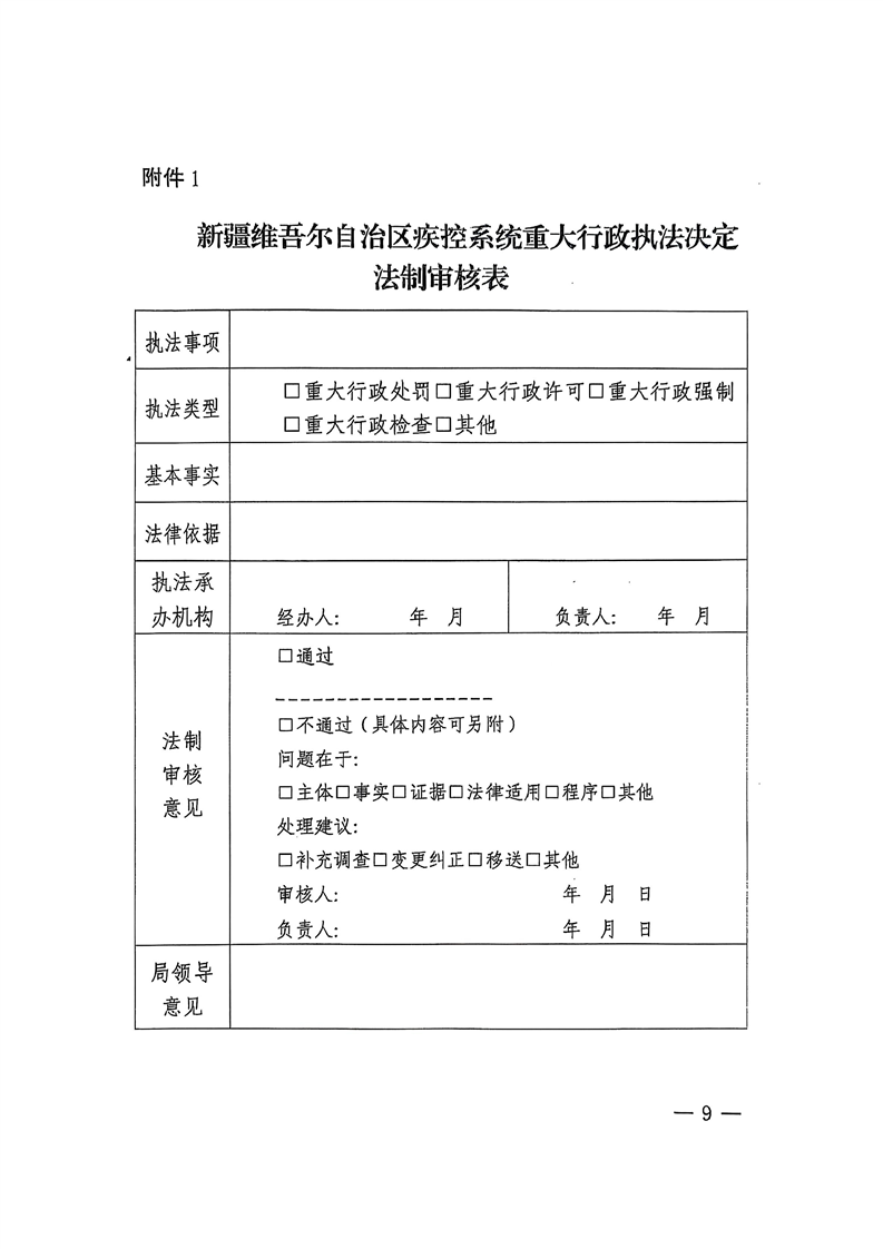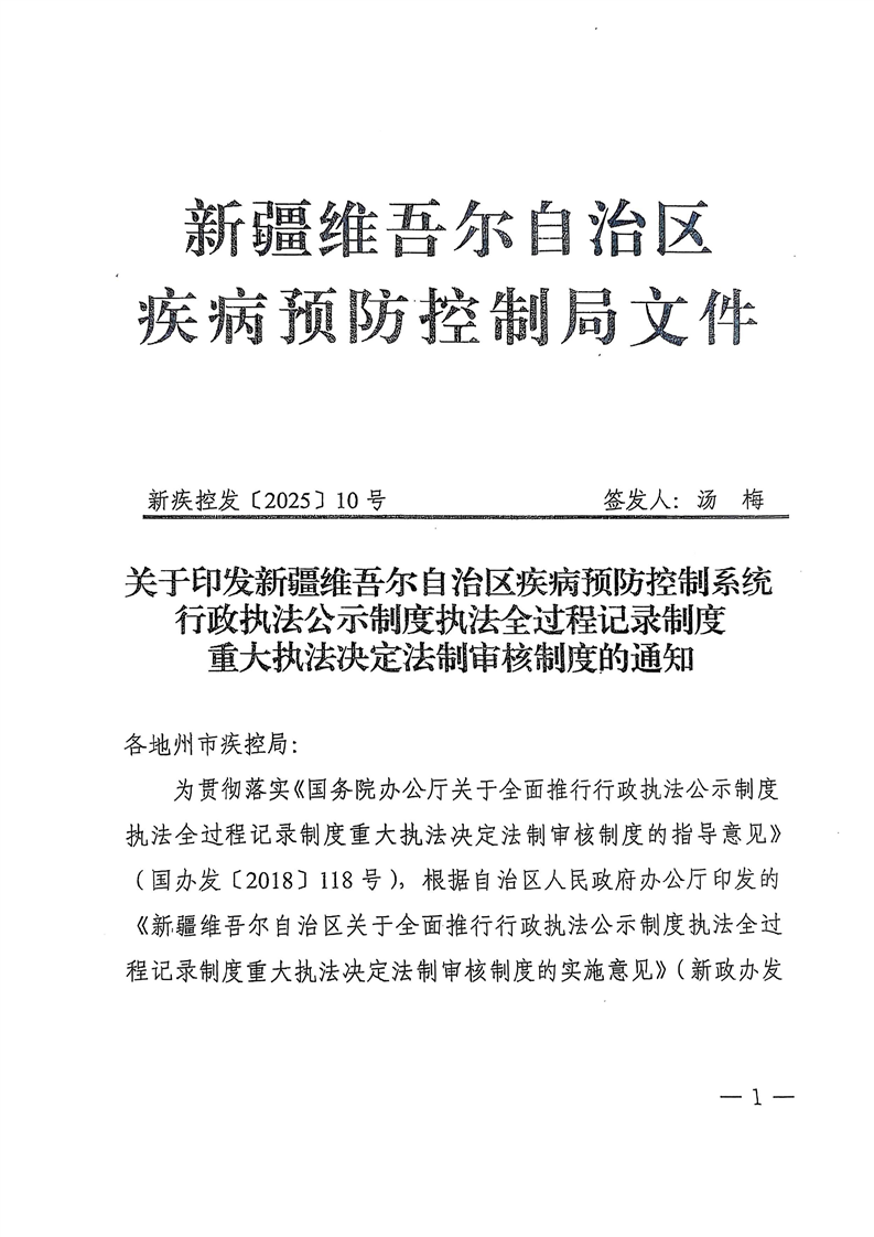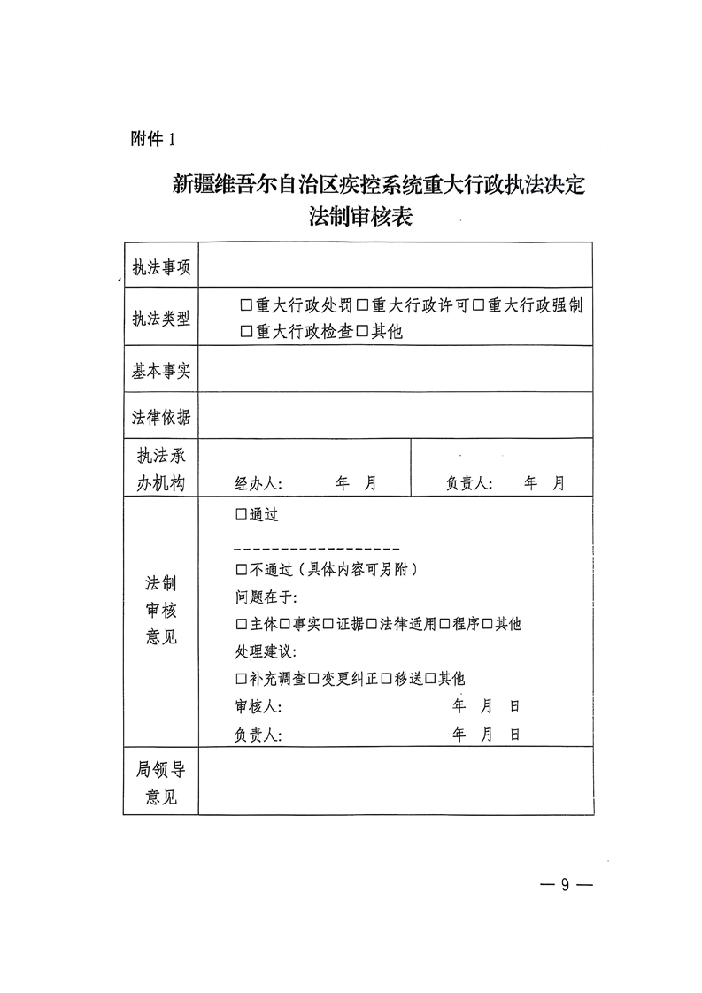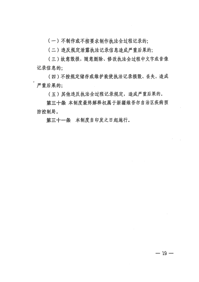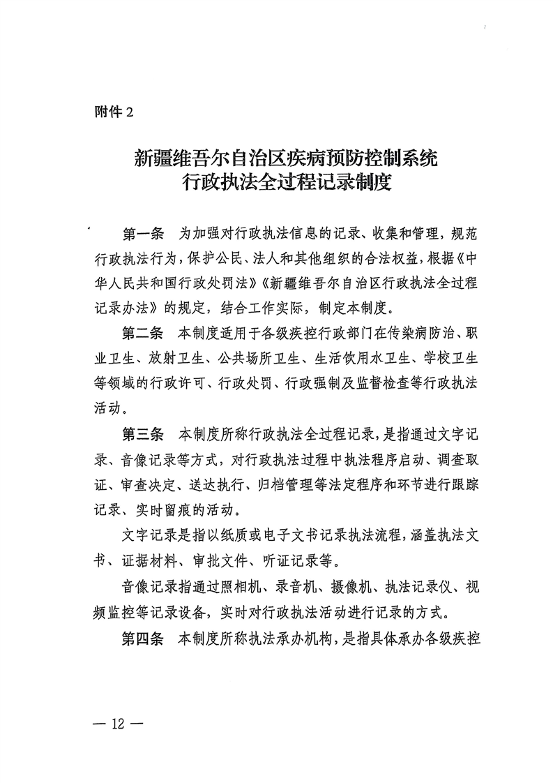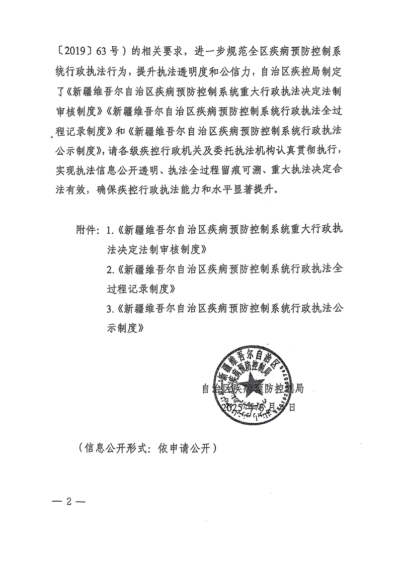 关于印发新疆维吾尔自治区疾病预防控制系统行政执法公示制度执法全过程记录制度重大执法决定法制审核制度的通知
