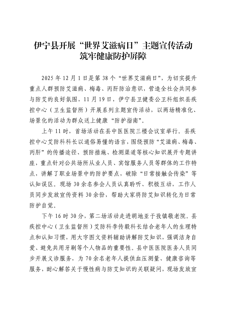 伊宁县开展“世界艾滋病日”主题宣传活动 筑牢健康防护屏障11
