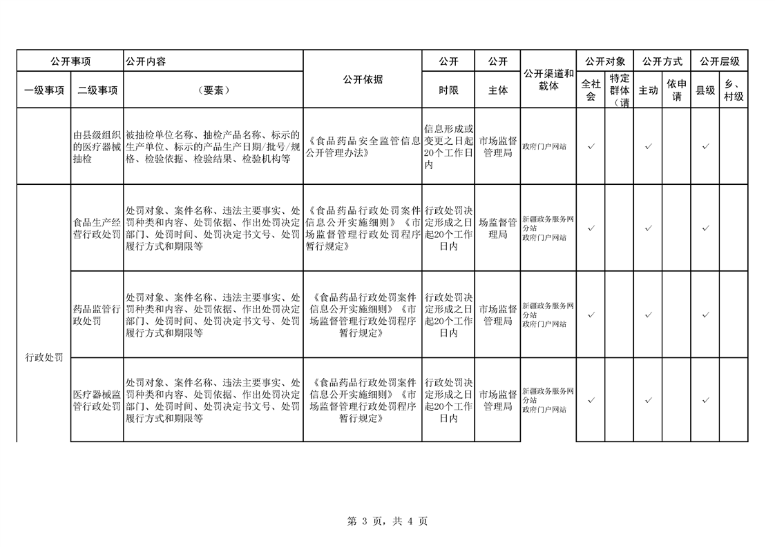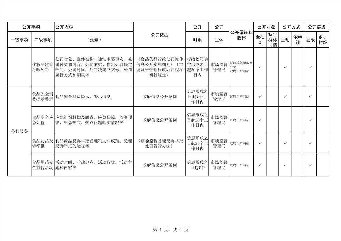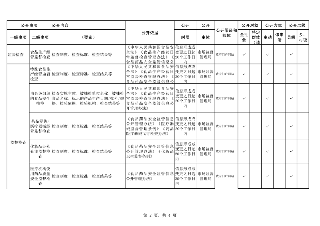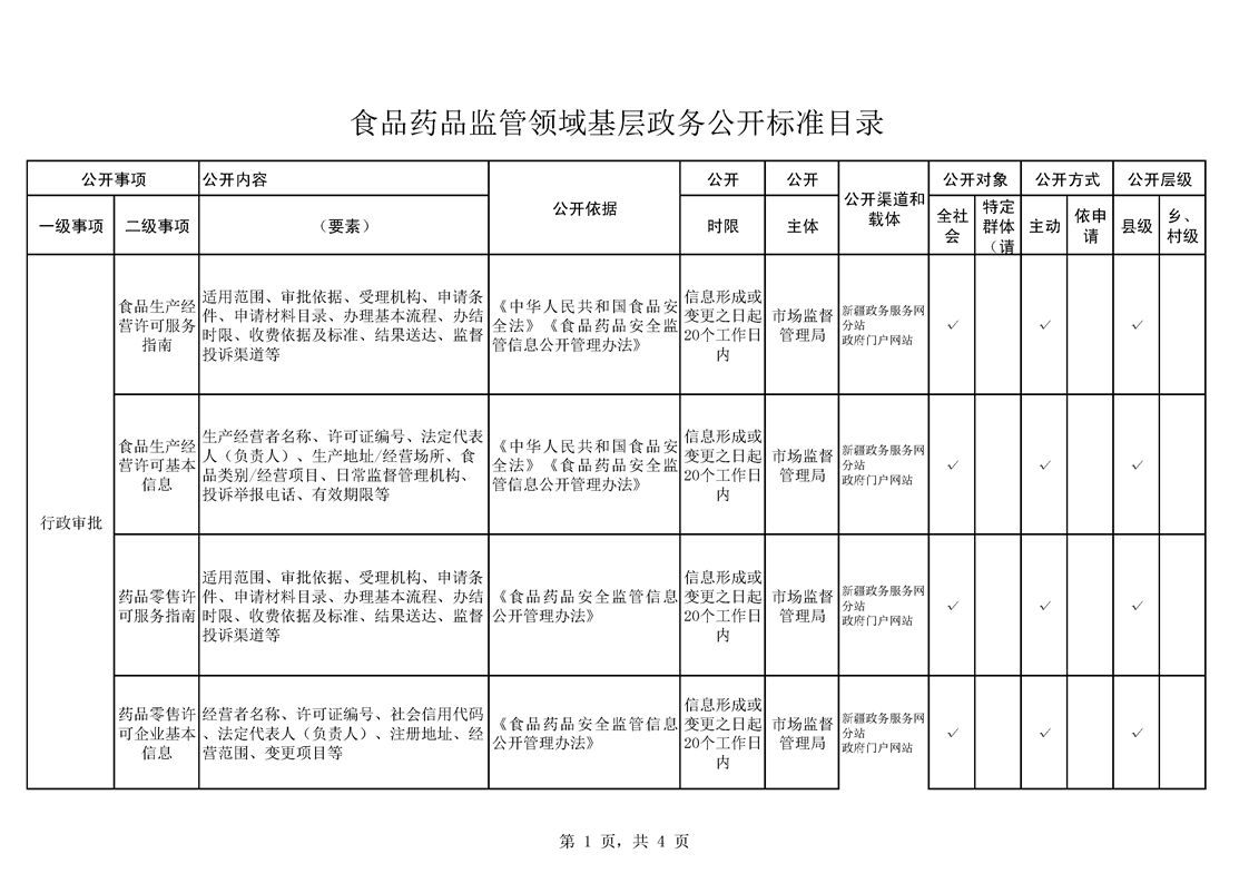 食品药品监管领域基层政务公开标准目录