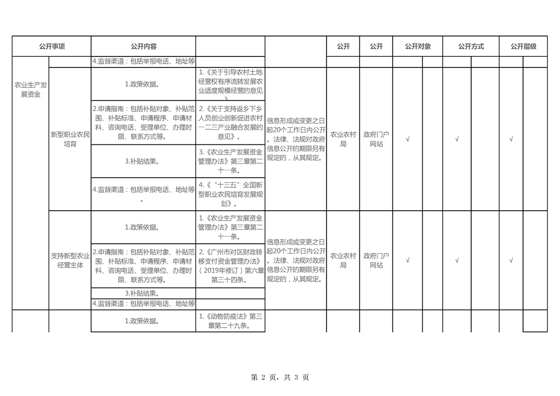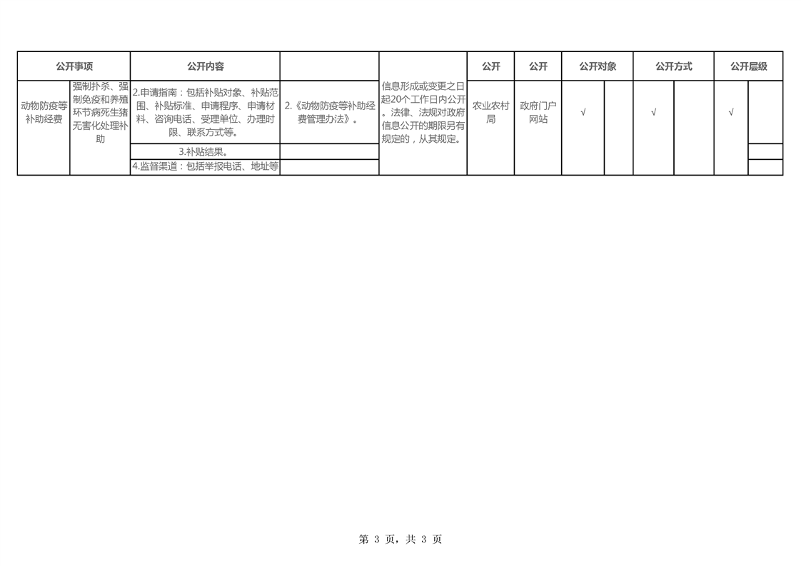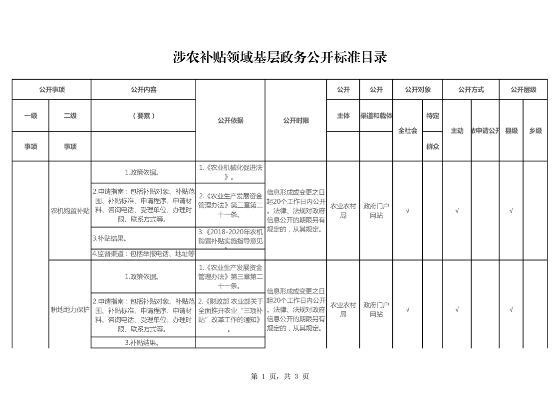 涉农补贴领域基层政务公开标准目录