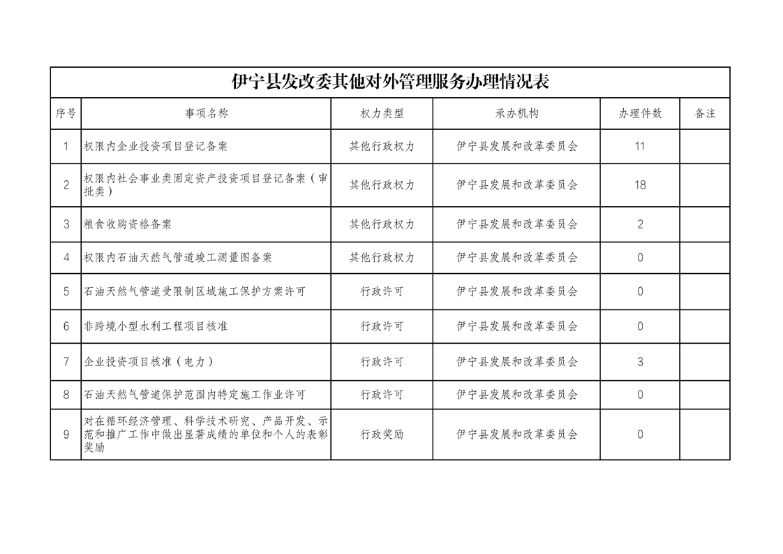 伊宁县发展和改革委员会2024年上半年其他对外管理服务办理情况表