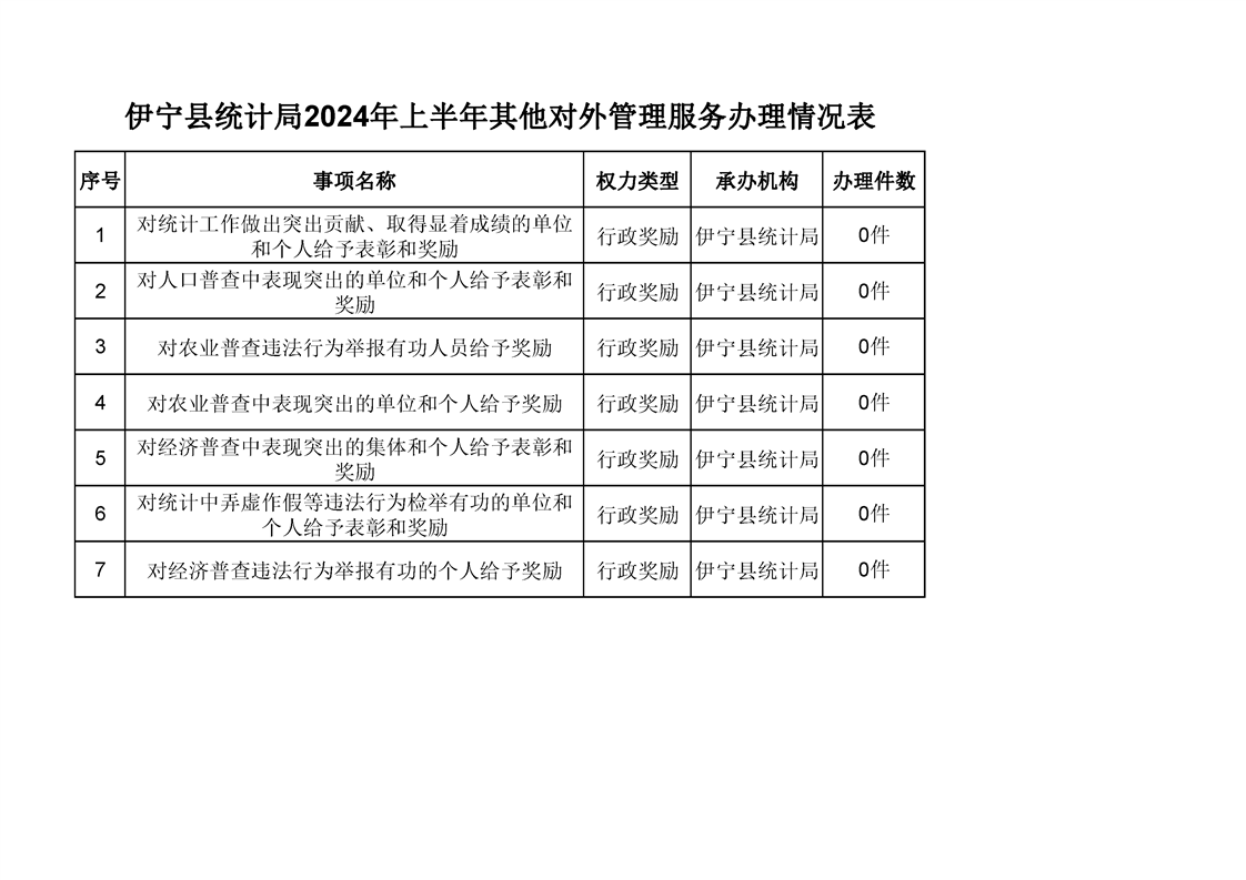 伊宁县统计局2024年上半年其他对外管理服务办理情况表