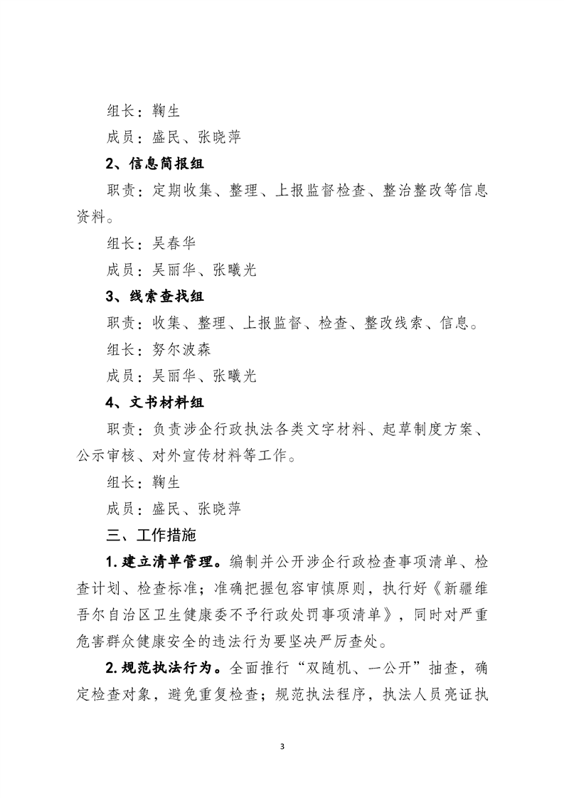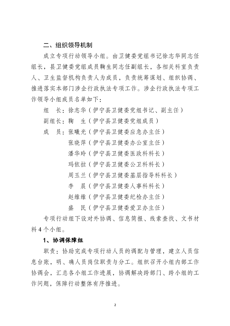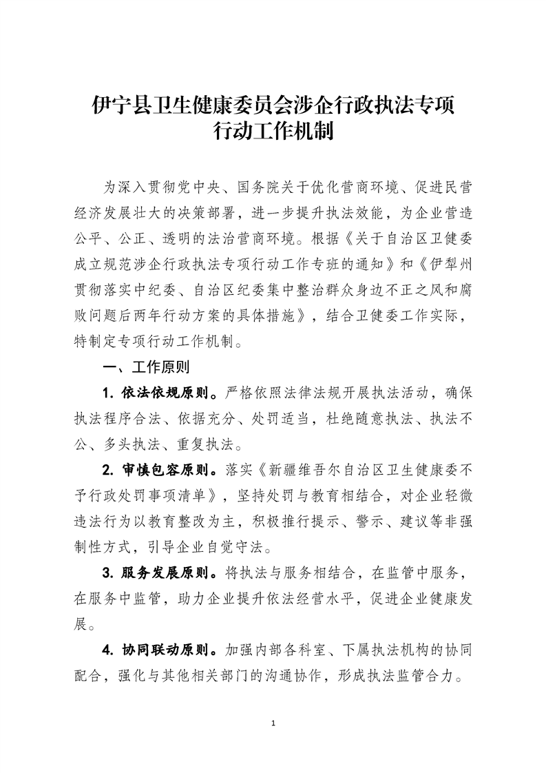 伊宁县卫生健康委员会涉企行政执法专项行动工作机制
