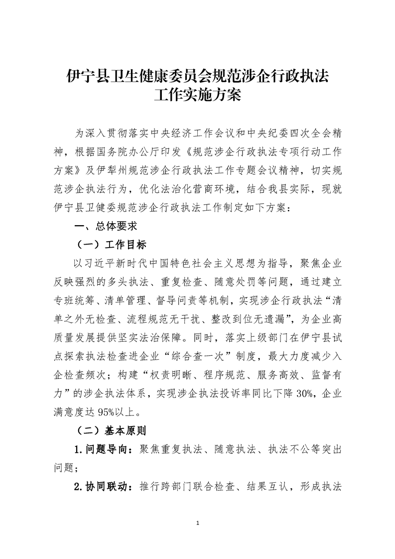 伊宁县卫生健康委员会规范涉企行政执法工作实施方案