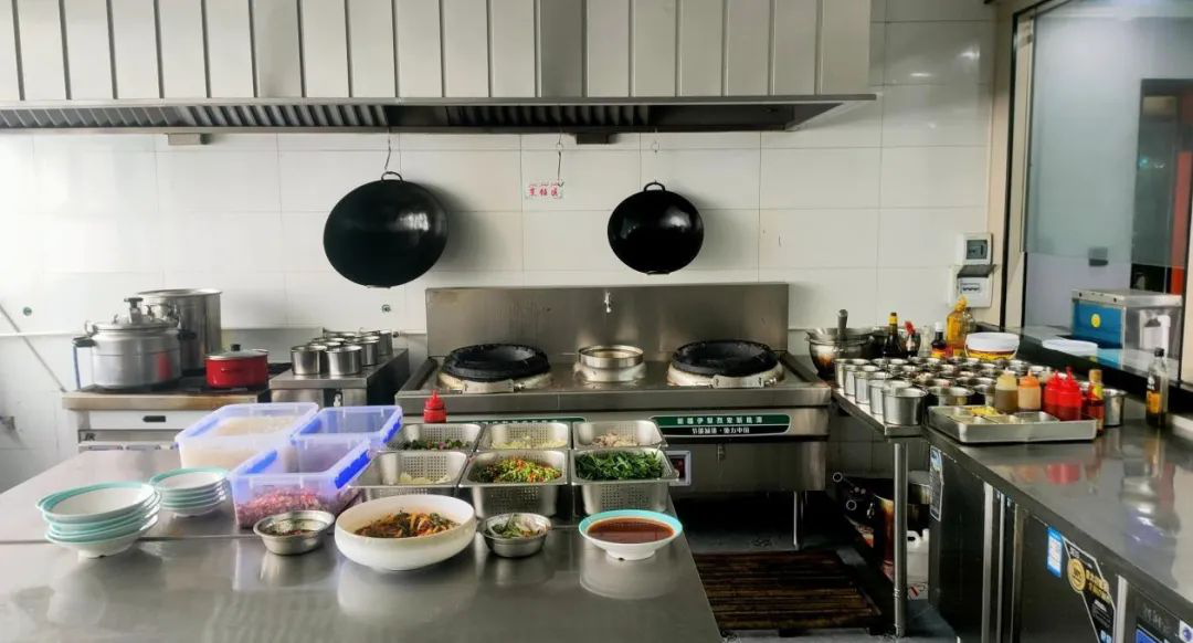 从业资质齐全并公示;后厨干净,油烟机无积垢、排水沟无积水,地面无油渍,从业人员穿戴整洁,餐饮用具符合消毒保洁要求,操作台面整体卫生良好;冷藏设施内摆放整齐,明显位置张贴反食品浪费标识。
