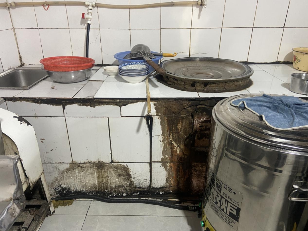 灶台不符合要求;从业人员未着洁净工作服操作;柜内摆放杂物;冰柜未除霜,冰箱内生熟未分开存放,对半成品未包保鲜膜,食品落地摆放,就餐区地面油渍未及时清理,未按要求落实进货查验记录。