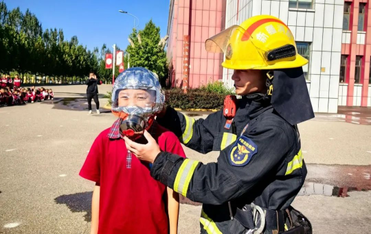 演练结束后,宣讲员还与学生们进行互动,现场演示灭火器的正确使用方法。学生们在消防员的帮助下试戴自救呼吸器、亲自使用灭火器,对消防器材有了更深的认识和了解,提升了消防安全意识。活动现场气氛热烈,师生积极互动,纷纷表示受益匪浅,并能将学到的内容运用到学习、生活和工作中。