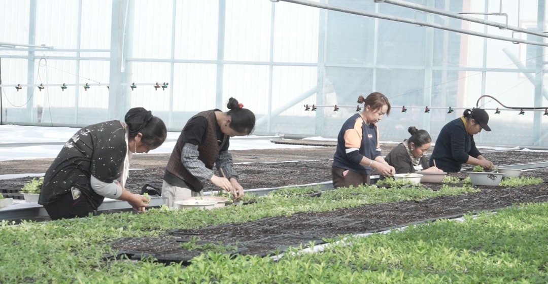 春寒料峭,这几天,伊宁县郎云间花卉基地的两座智能温室大棚内一片繁忙的场景,工作人员正在利用晴好天气繁育和移栽花苗。