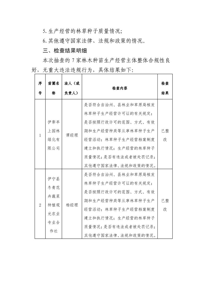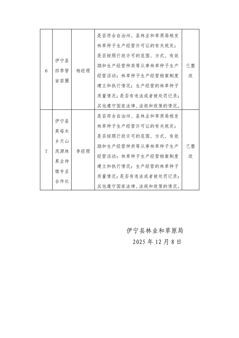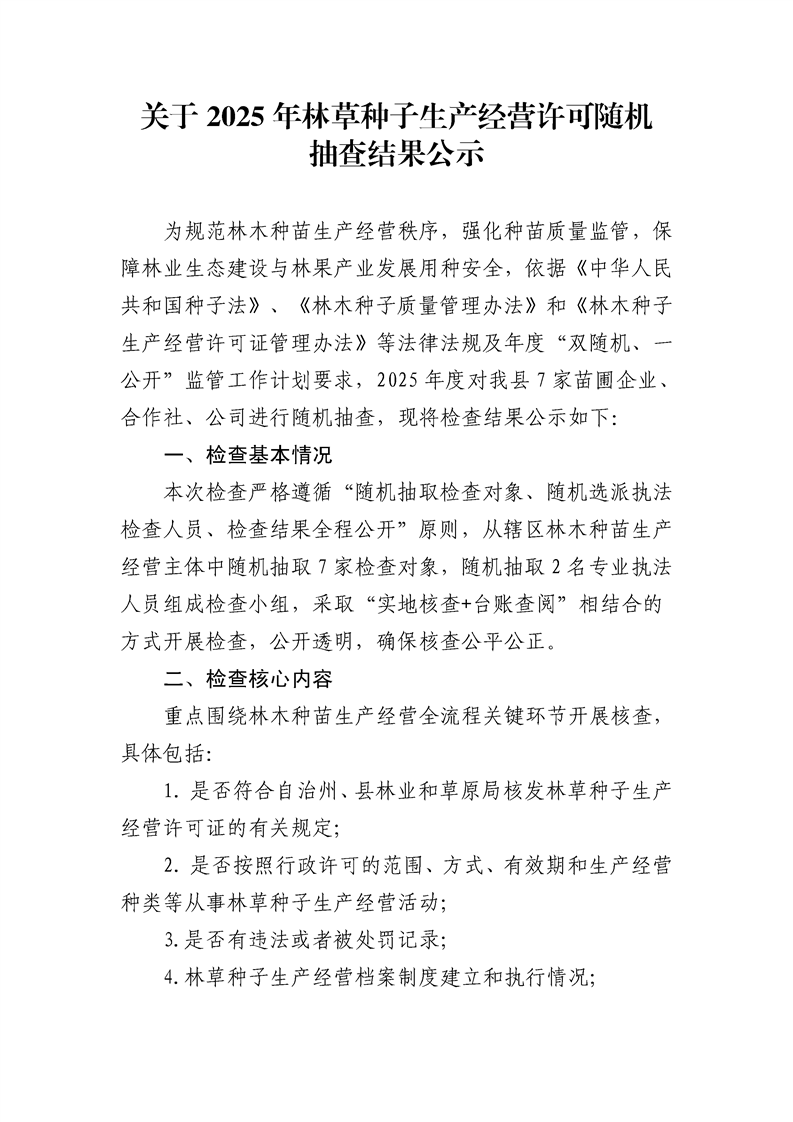 关于2025年林草种子生产经营许可随机抽查结果公示