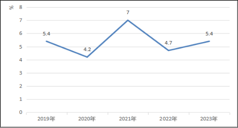 图6:2019-2023年社会消费品零售总额及其增长速度