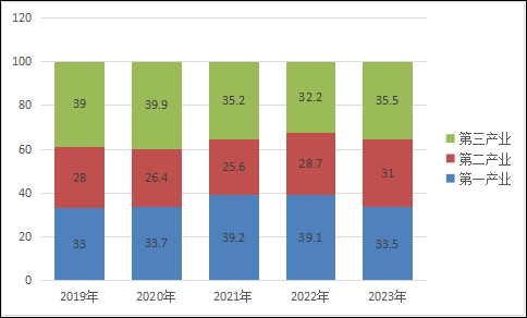 图2:2019-2023年三次产业增加值占地区生产总值比重