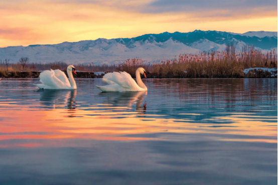 伊宁县夏合勒克村的天鹅泉景区,是国内最大的疣鼻天鹅冬季生态栖息地之一,是一处集动植物景观、湿地景观、水系景观于一体的风景绝佳之地,更是一片原始静谧的人间净土。从20世纪90年代起,每年9月到次年3月,哈萨克斯坦巴尔喀什湖的天鹅地都会来此越冬栖息。